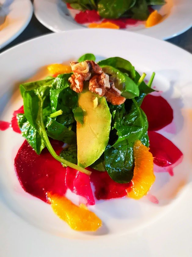 Avocado, Baby Spinach and Caramelized Beetroot Salad